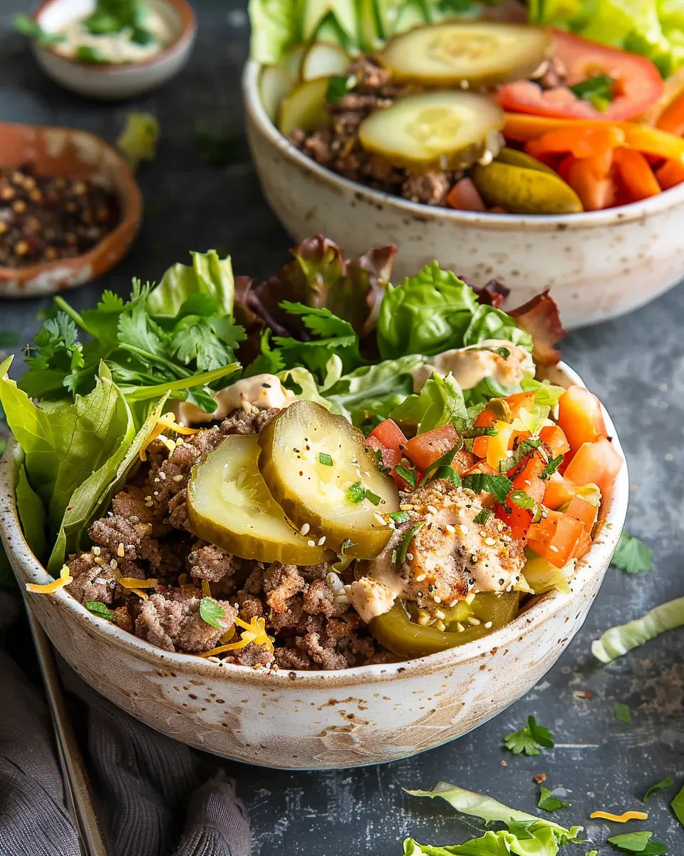 And there you have it—your perfect burger bowls, ready for a delicious meal that’s both satisfying and customizable. Invite a few friends over, engage in some good conversation, and enjoy your culinary masterpiece!