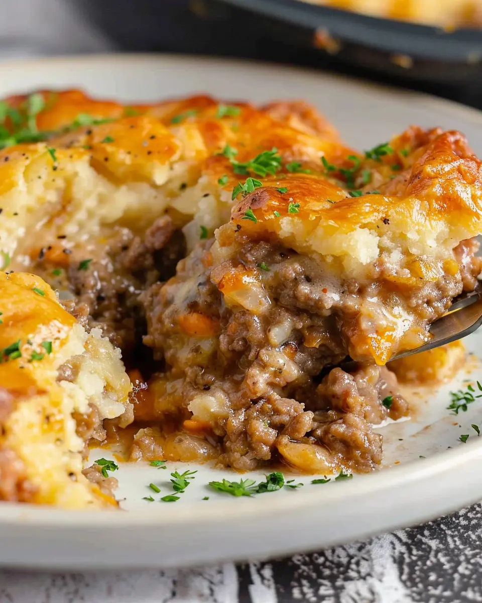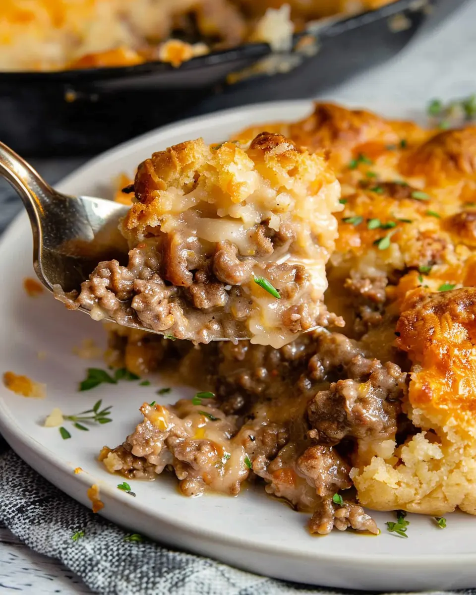 A comforting and savory dish that combines the rich flavors of ground beef and Cheddar Bay biscuits.