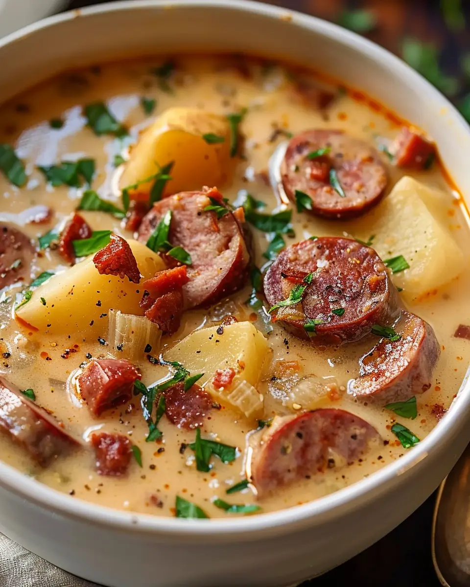 Creamy Cajun Potato Soup: Indulgent Flavor with Andouille Sausage