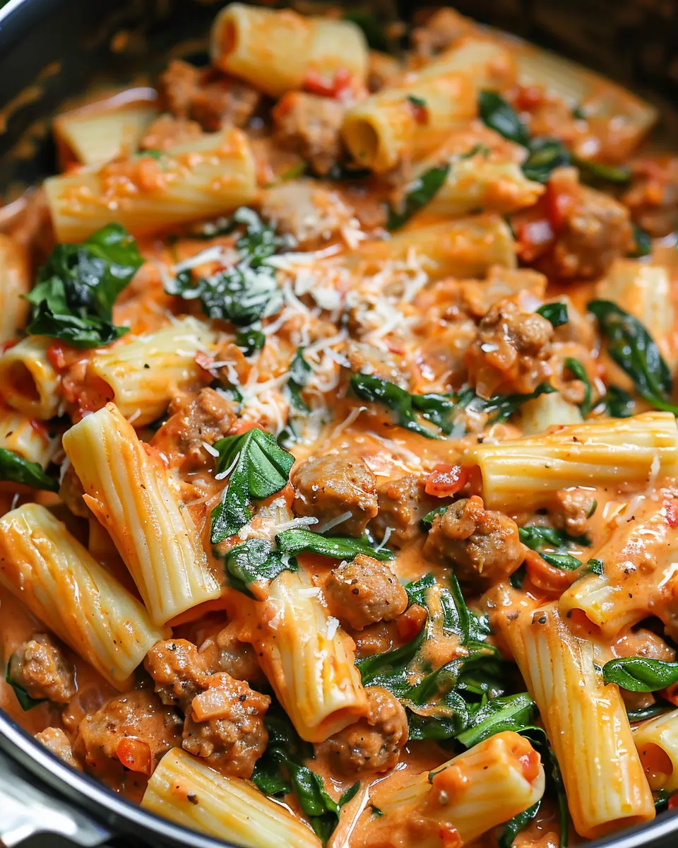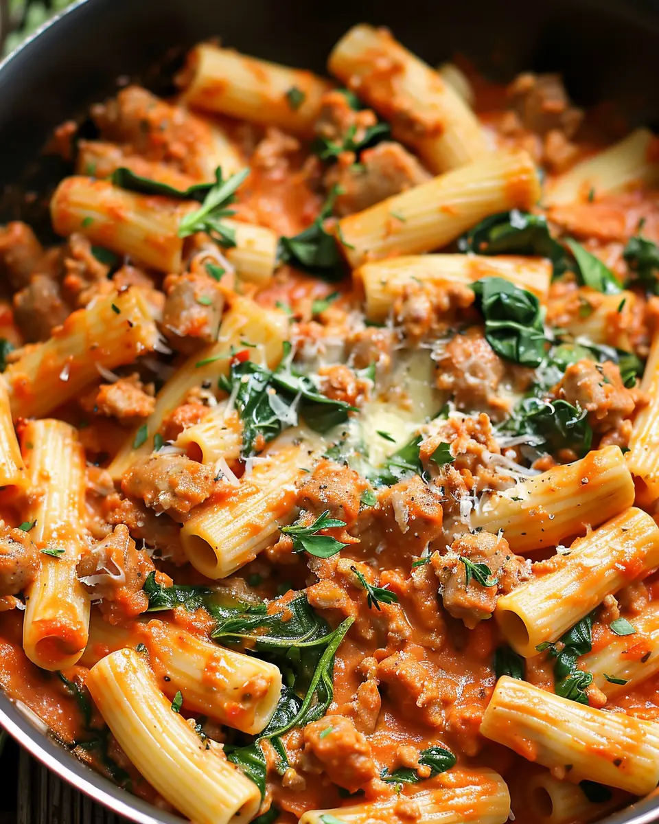 If you’re a young professional juggling work and life, Creamy Sausage Rigatoni is your culinary ally. This one-pan, 30-minute masterpiece brings together the comforting flavors of sausage, creamy tomato sauce, and vibrant spinach, perfect for quick weeknight dinners or impressing guests.