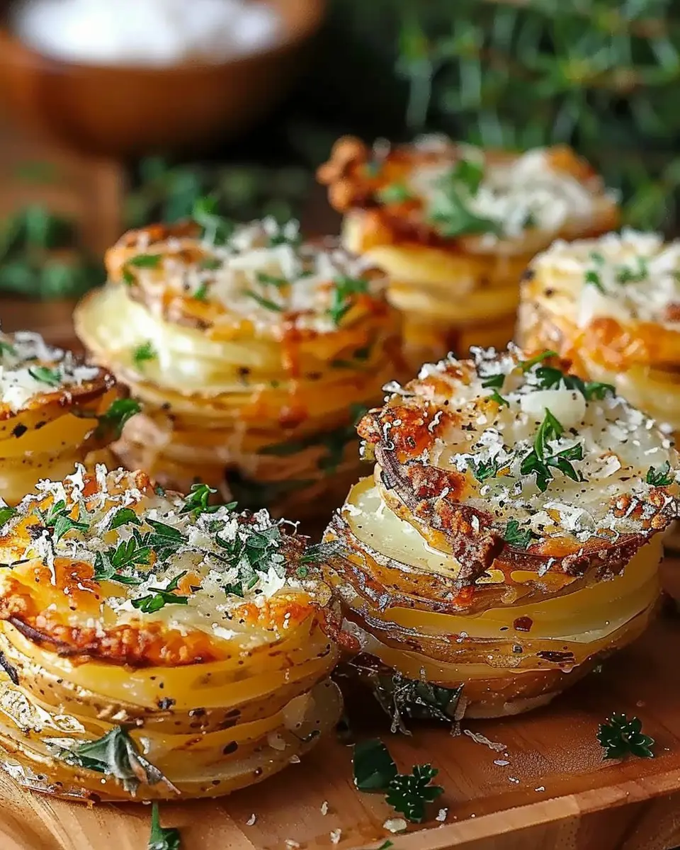 This Crispy Roasted Garlic Parmesan Potato Stacks recipe is the ultimate side dish that combines crispy layers of potatoes, garlic, and parmesan cheese for a delightful comfort food experience.