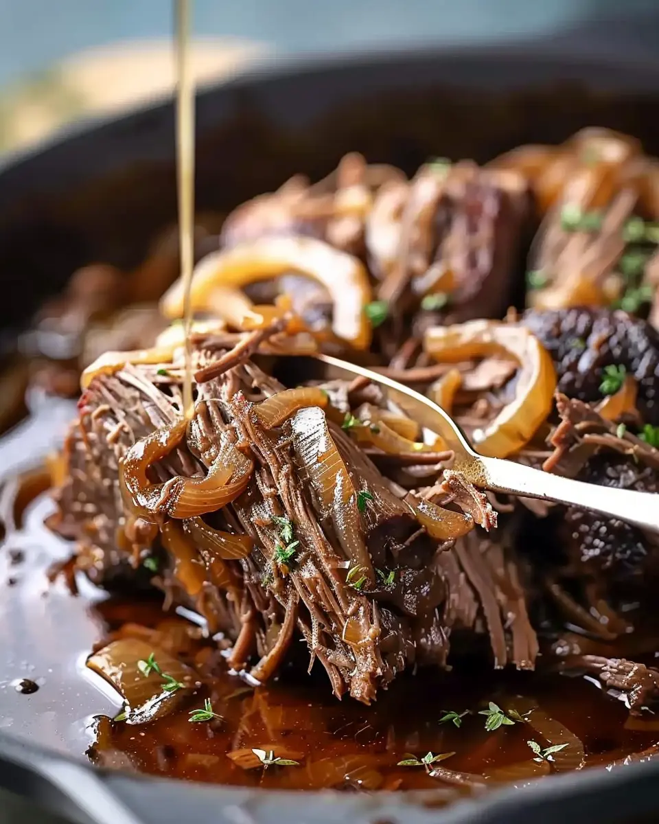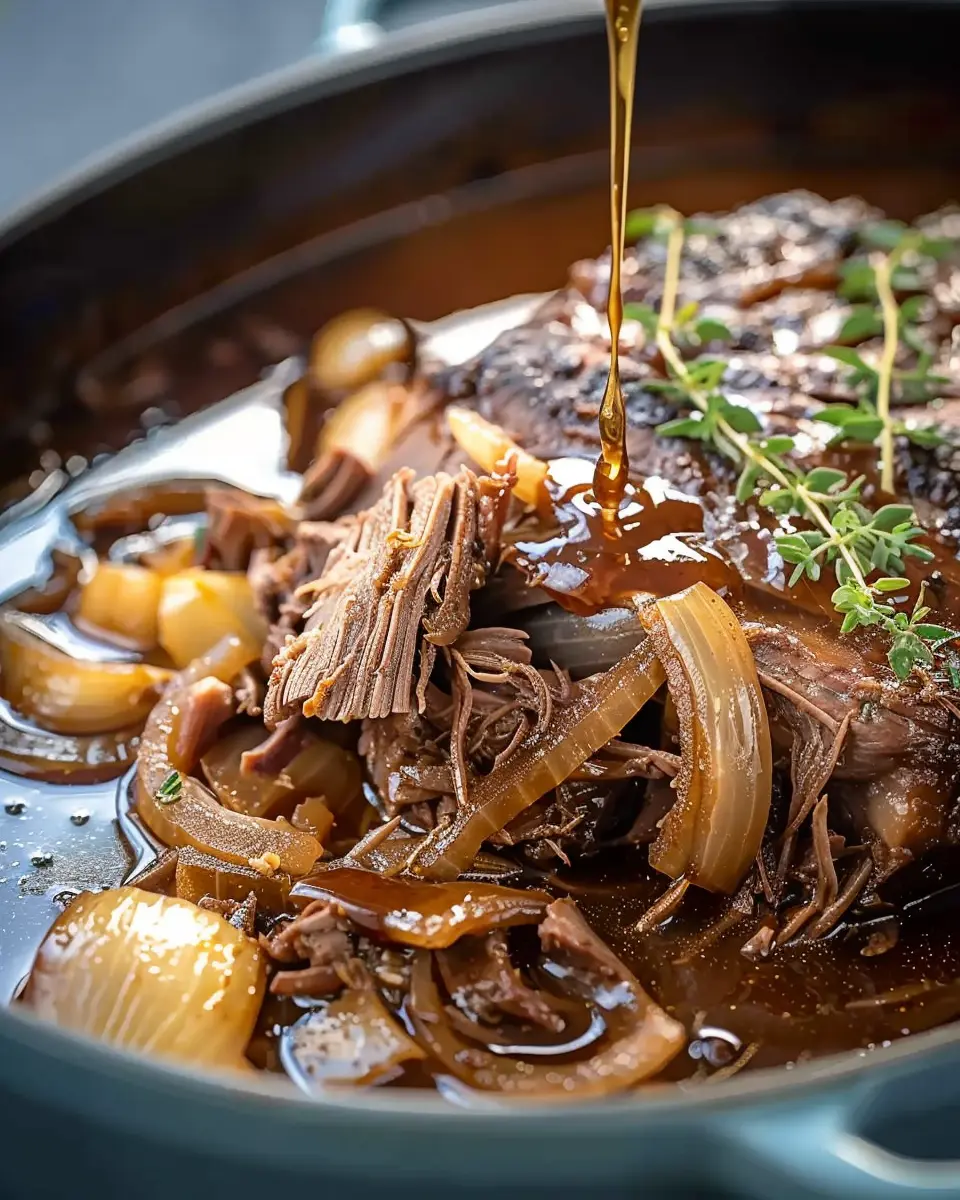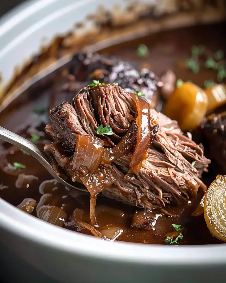 A delicious and comforting meal made with tender pot roast and flavorful French onion soup.
