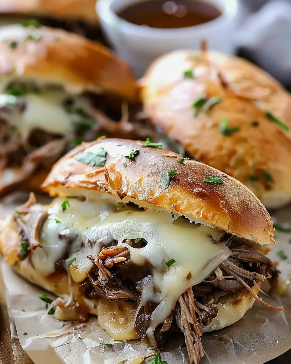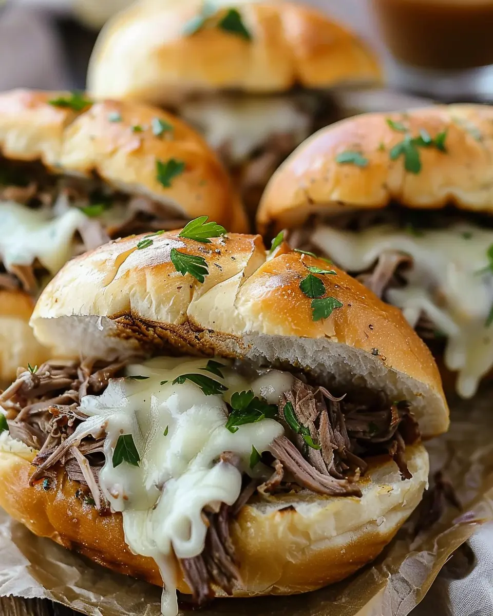 Perfect for Entertaining: If you’re hosting friends or family, Crockpot French Dip Sandwiches are an excellent choice. You can set up a sandwich bar with a variety of toppings (think sautéed onions, provolone cheese, or spicy mustard) and allow everyone to customize their own. It’s interactive, fun, and—most importantly—delicious!