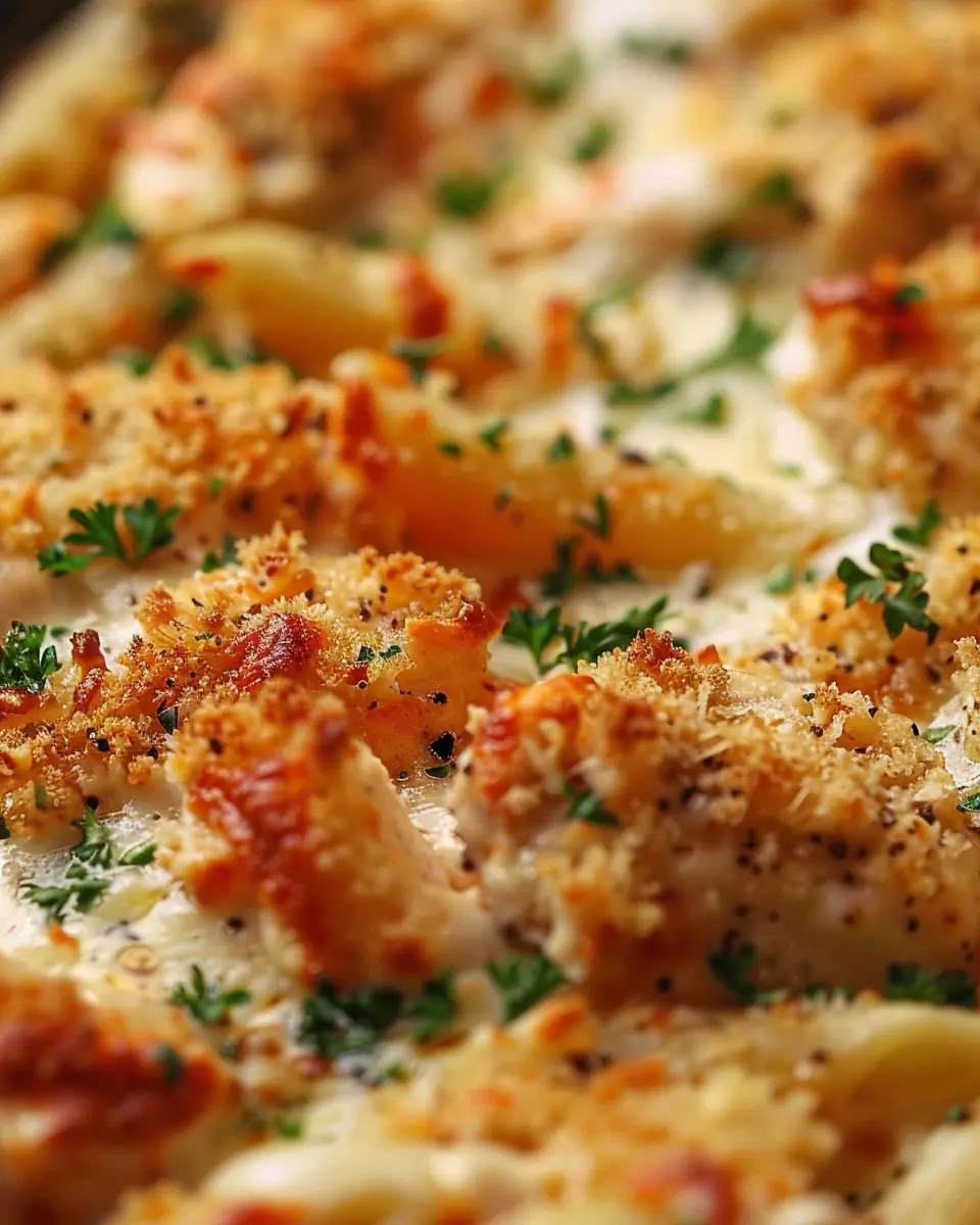 After your dish has baked covered for about 30-35 minutes, it’s time for the magic touch. Remove the foil and sprinkle the shredded mozzarella and grated Parmesan cheeses generously over the top. Next, add a layer of breadcrumbs. Why breadcrumbs? They give a delightful crunch to your Dump-and-Bake Chicken Parmesan Casserole that contrasts beautifully with the soft pasta and tender chicken.