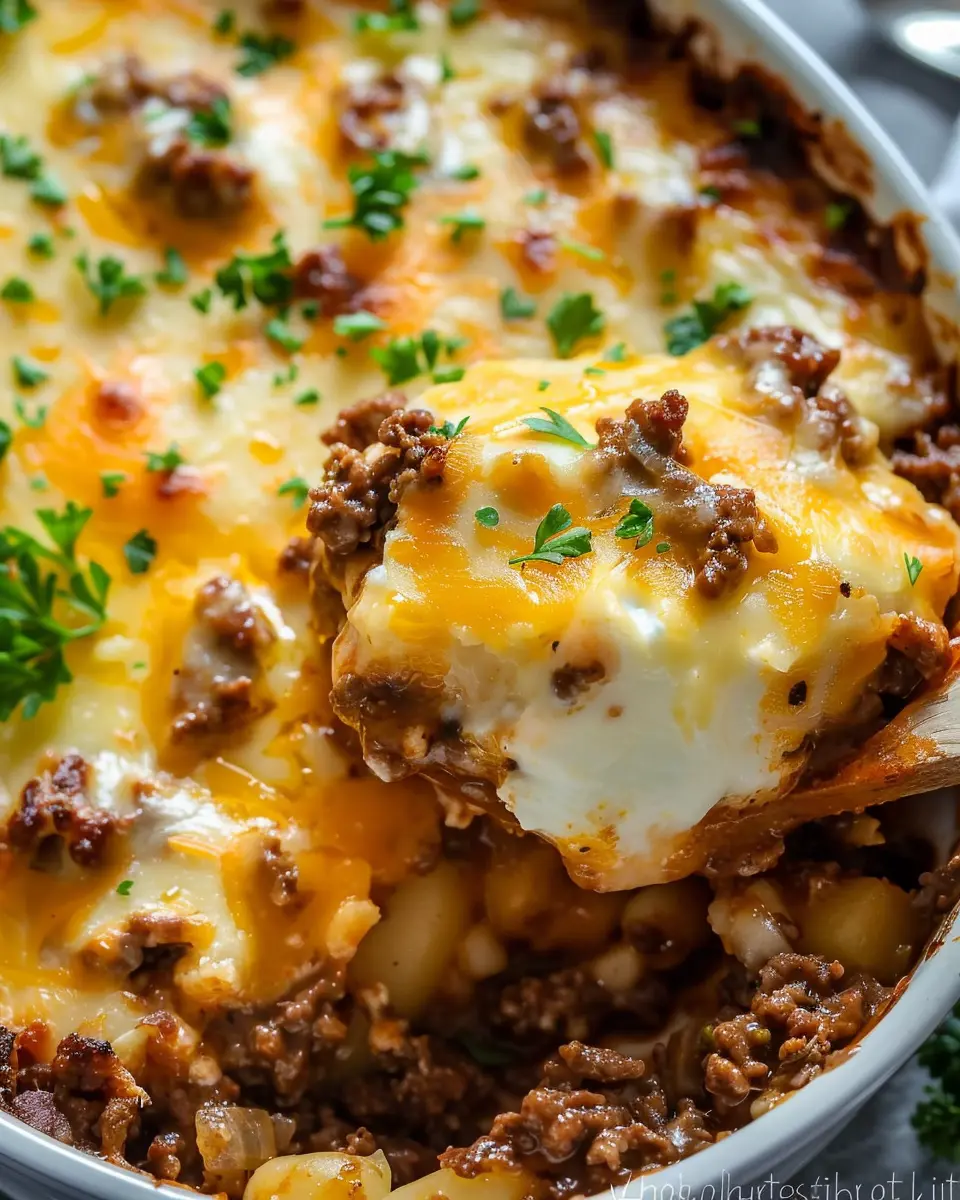 When you add the hearty flavors of seasoned ground beef mingled with tender vegetables and crispy turkey bacon, it’s sheer bliss on a plate. The comforting aroma wafting through your kitchen will undoubtedly bring back fond memories of shared meals from childhood, whether at your family’s dinner table or memorable gatherings with friends.