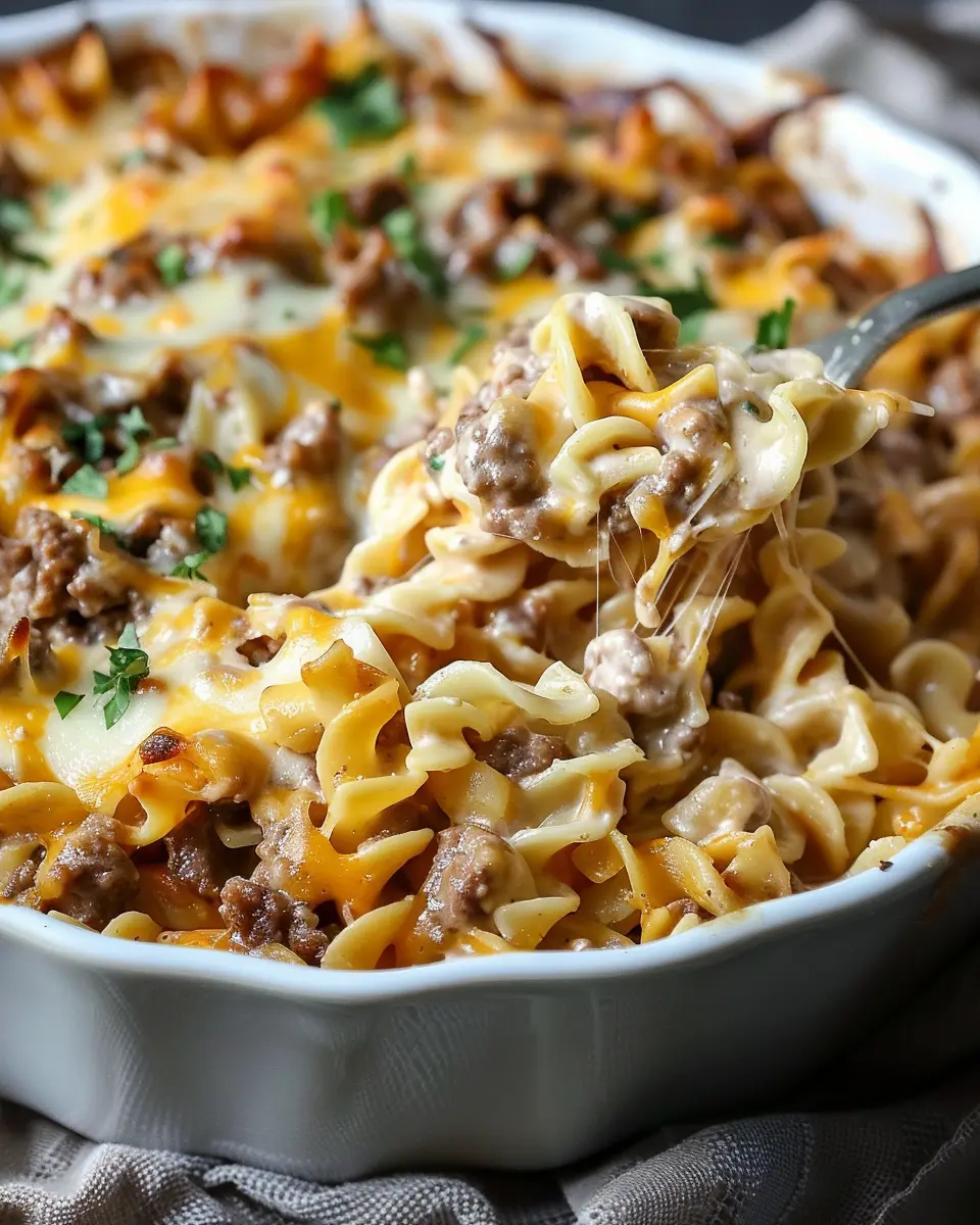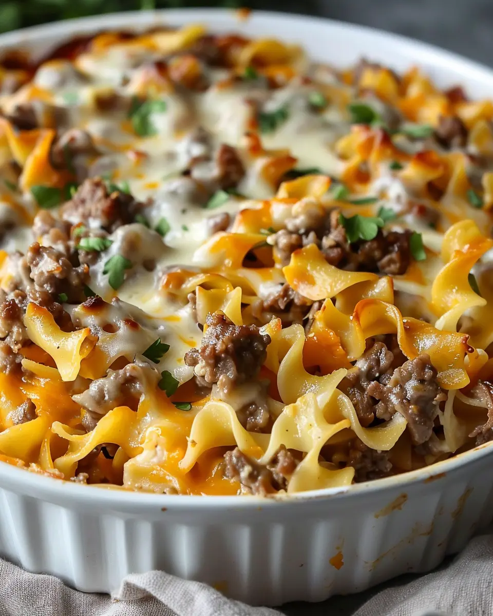 A hearty and comforting Sour Cream Beef Noodle Casserole that brings joy to any meal.