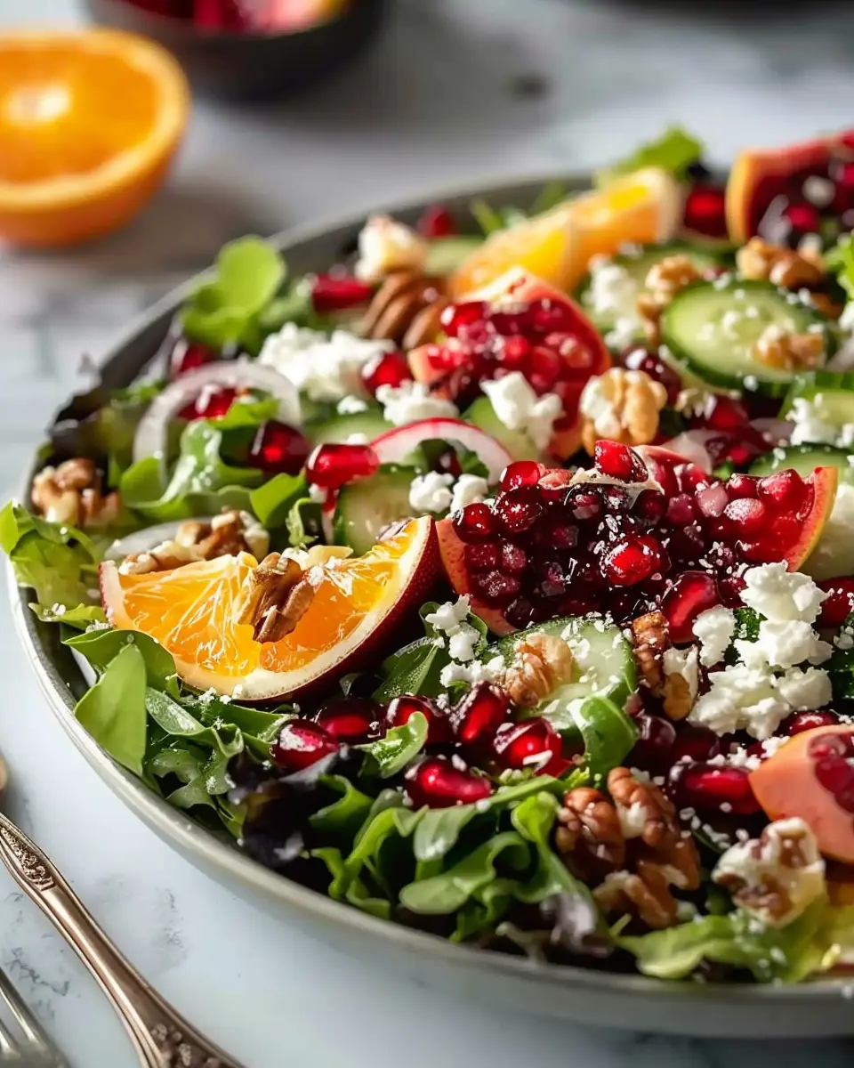 The heart of the Winter Christmas Salad lies in its versatility and the beautiful array of ingredients that capture the essence of winter. With its bright colors, the salad brings a warm glow to any holiday gathering. Here’s what makes it particularly festive: